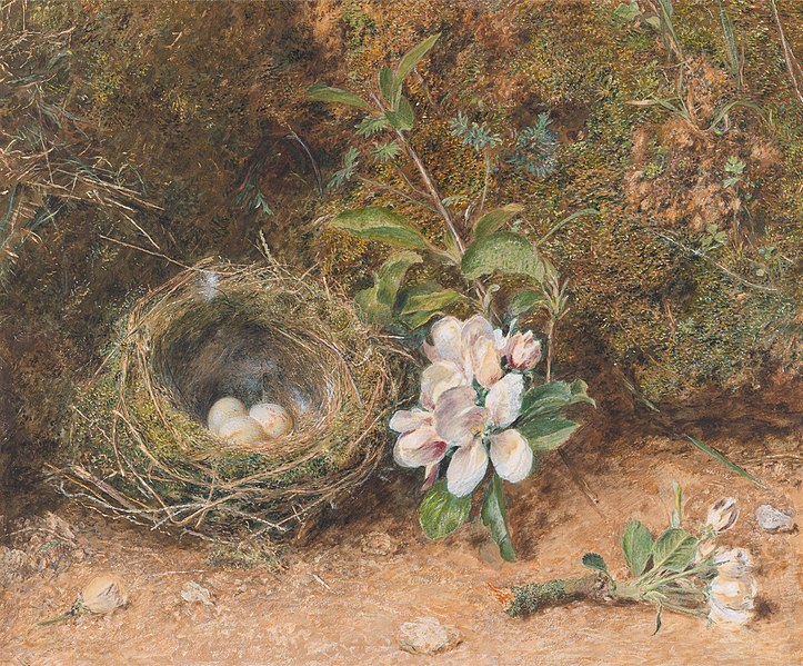 William Henry Hunt, Bird’s Nest with Sprays of Apple Blossoms, circa 1847